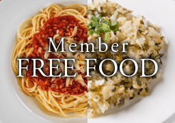 メンバー様には限定で、休憩ランチ、宿泊ディナー、宿泊モーニングのフードを無料サービス致します。